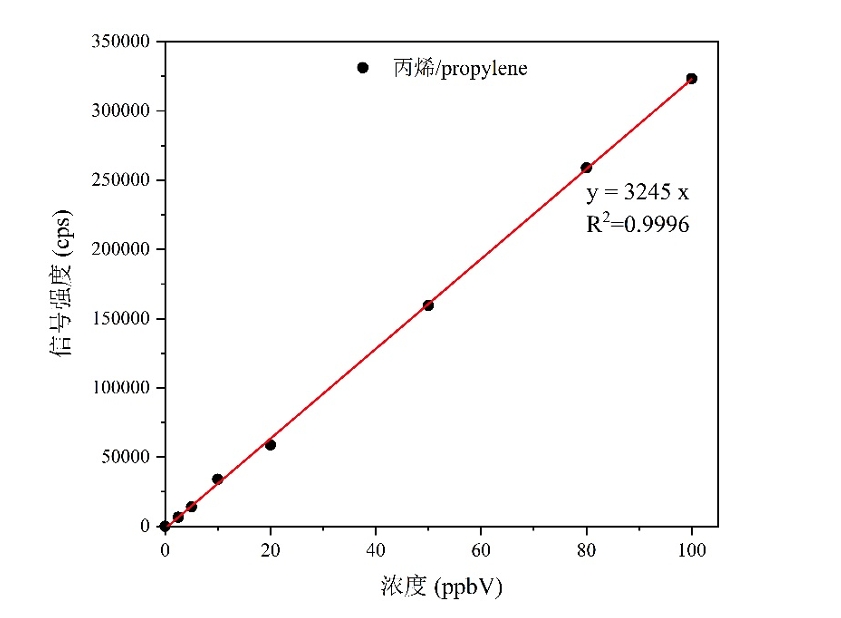 图2. Vocus CI-TOF丙烯的灵敏度多点标准曲线