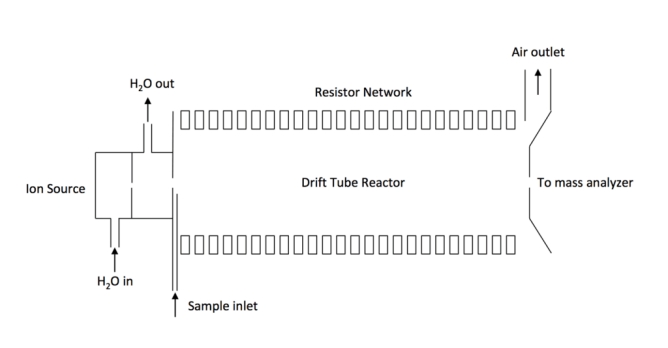 质子转移反应质谱是上述技术的再一次飞跃,由Lindinger等人在90年代实现。质子转移反应质谱的创新主要有两点,一是直接利用空心阴极放电产生高纯度高浓度的母体离子,无需采用SIFT中的离子选择四级管。二是用较短的漂移管取代了之前的流动管,主要用均匀电场而不是高流速载气来驱动产物离子往下游运动。正是这两点改进,使得仪器的灵敏度相对于SIFT-MS有几个数量级的提升。